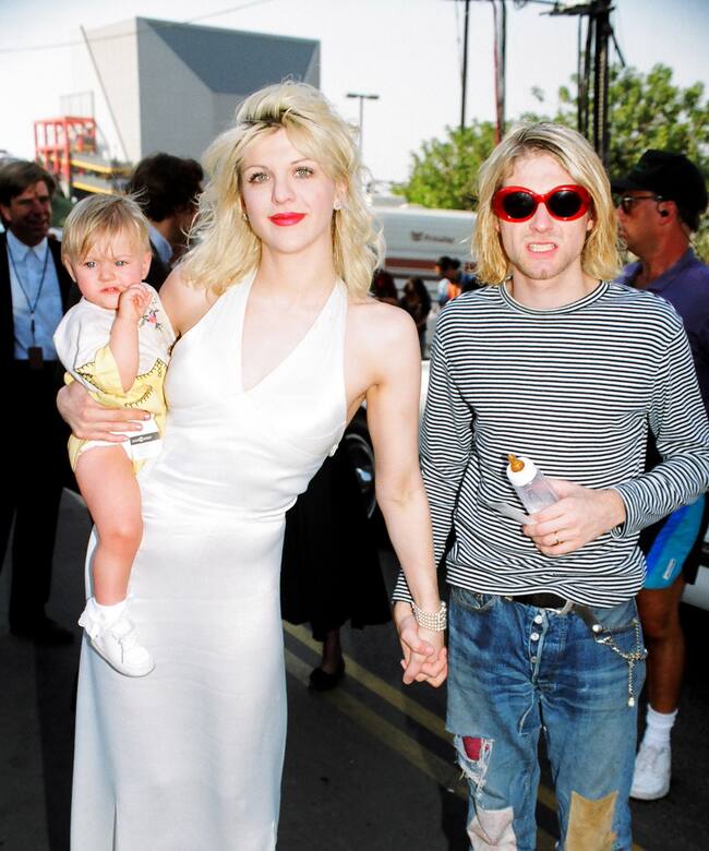 Courtney Love y Kurt Cobain junto a la hija de ambos, Frances Bean Cobain, en1993. / Jeff Kravitz
