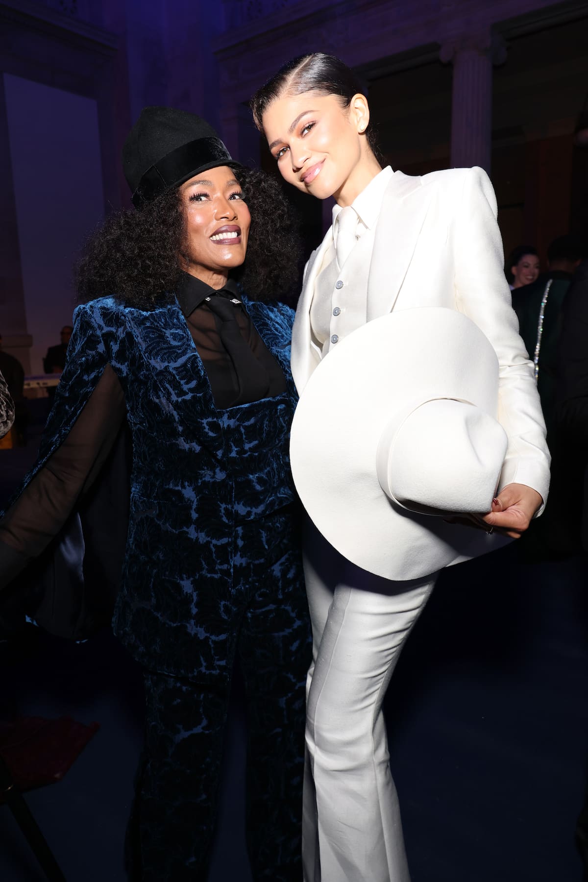 Zendaya se quitó el sombrero que lució en la alfombra para posar junto a la mítica Angela Basset.