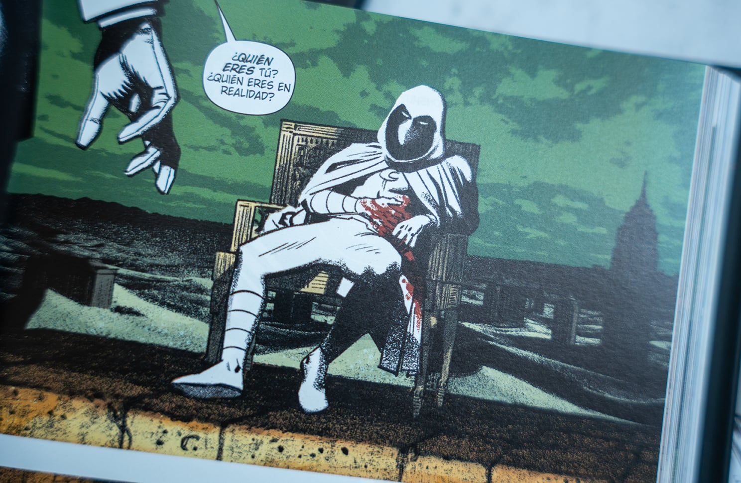 La etapa de Lemire no solo es visualmente impactante; es también un estudio profundo sobre lo que significa ser uno mismo cuando tu mente es un campo de batalla. En lugar de tratar el trastorno de identidad como un simple recurso narrativo, lo aborda con sensibilidad y dramatismo. Marc no es un superhéroe que “sufre” una enfermedad mental: es un hombre luchando desesperadamente por armar su propio rompecabezas emocional, por encontrar sentido en su fragmentación.