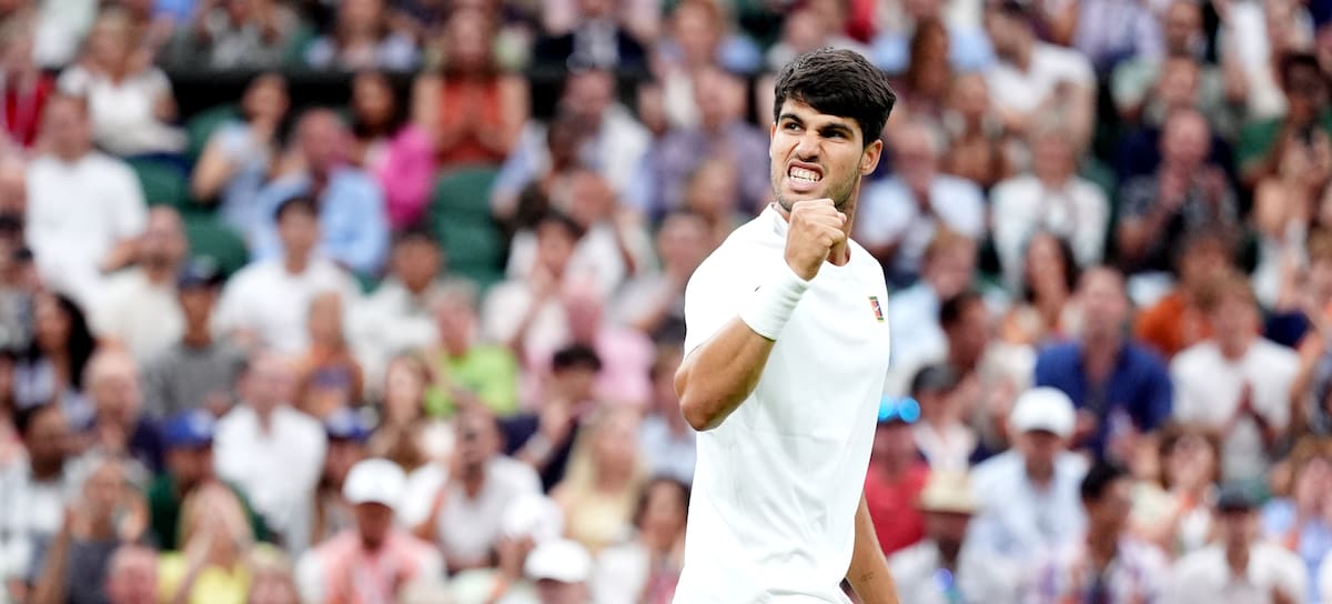 Carlos Alcaraz en su partido contra Andrey Rublev en Wimbledon, el 6 de julio de 2025. / Adam Davy - PA Images