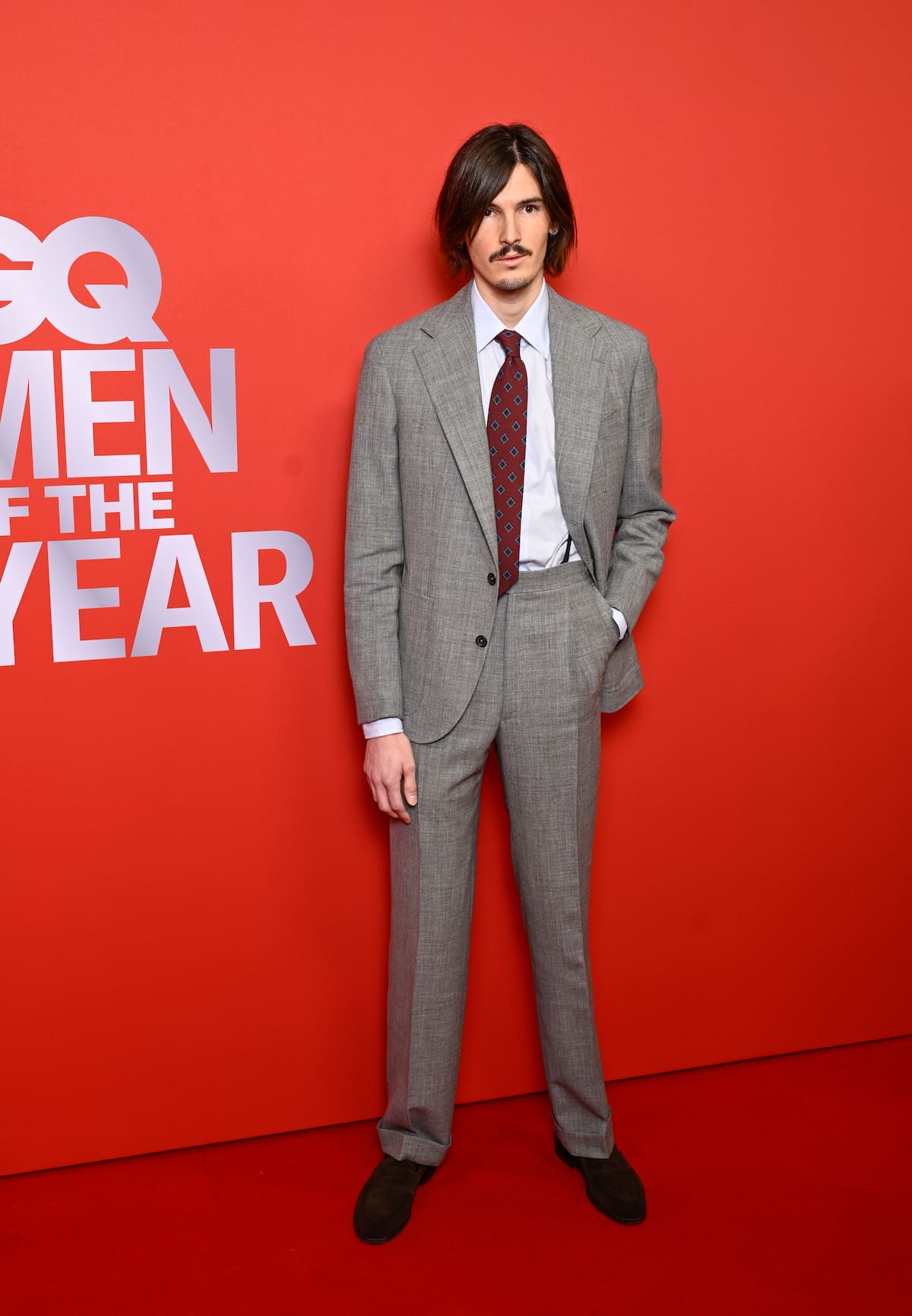 El actor británico optó por un estilo de club de jazz con este traje de terciopelo rojo y unos monk strap de cuero marrón a los pies. Un look clásico. Y como las alfombras también se viven en pareja, posó con Zawe Ashton.
