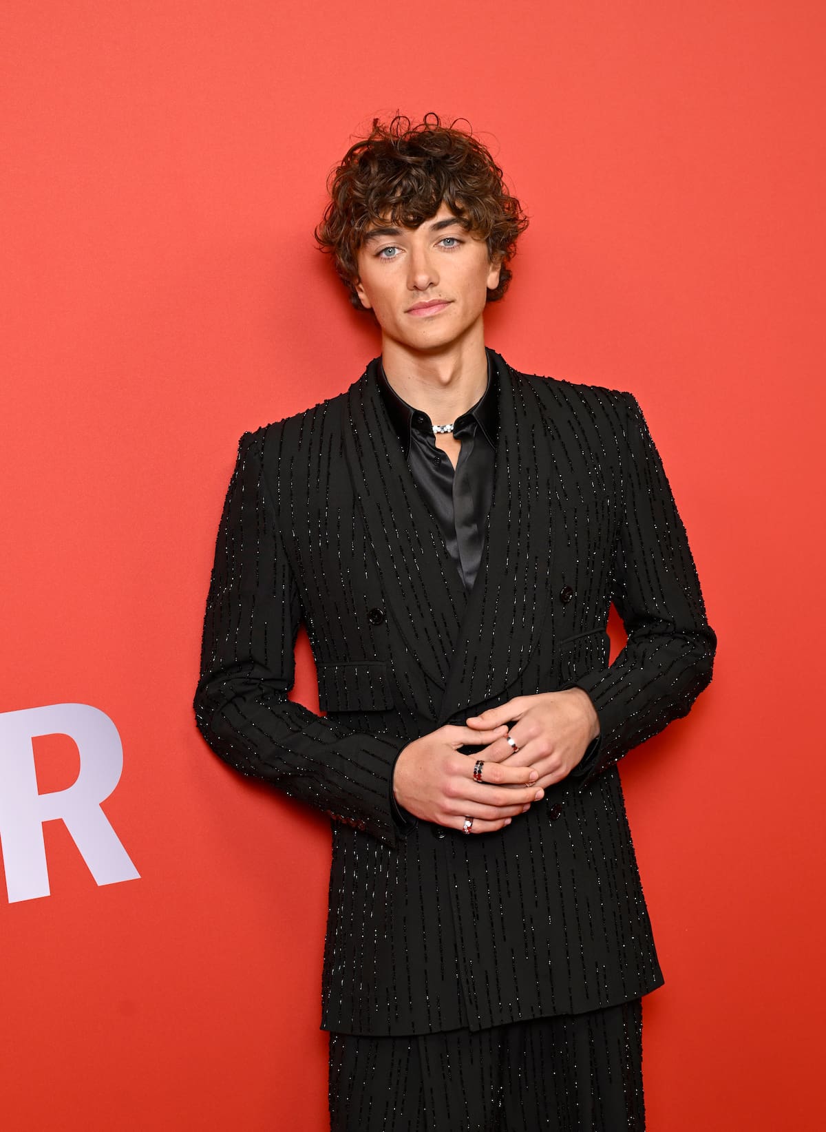 Al final, vamos a tener que ser Team Jeremiah después de verle en esta alfombra con este traje negro cruzado lleno de lentejuelas de Dolce & Gabbana.