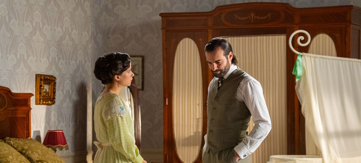 Margarita admite a Curro que no puede garantizar que su plan para detener la boda de Ángela funcione, y revela que la persona con la que quiere contactar es… ¡el conde de Ayala! Enora, Toño y Manuel logran defenderse de las sospechas de Rivero y, por ahora, salen bien parados. Enora insiste en que el comandante no sabe tanto como pretende. Leocadia obliga al mayordomo a visitarla por las noches en su habitación. Alonso asigna a Curro su primera tarea como secretario: calcular la deuda con la señora de Figueroa. El joven agradece a Ángela haberlo impulsado a salir del servicio, aunque la tensión entre ellos sigue presente. María y Carlo no saben cómo comunicar su relación al resto del personal, así que para evitar sorpresas, fingen muestras de afecto delante de ellos. Martina finalmente confiesa a Adriano lo que siente… ¡lo extraña! Están a punto de besarse cuando Alonso y Ángela los interrumpen.