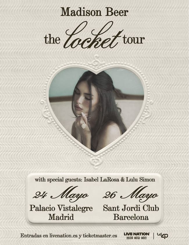 Madison Beer está de vuelta. La cantante ha lanzado su nuevo álbum, Locket, un álbum pop lleno de melodrama, melodías melancólicas y mucho desamor. Vamos, cien por cien, Madison. ¿Lo mejor de todo? Que junto a este álbum, la cantante estadounidense ha anunciado nueva gira. Un tour mundial que, además, viene a España con dos fechas. The Locket Tour de Madison Beer llega a nuestro país el 24 de mayo al Palacio Vistalegre de Madrid y el 26 de mayo al Sant Jordi Club de Barcelona. Una gira que viene de la mano de LOS40.