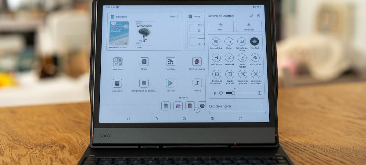 Hasta ahora, la Note Air 5C era un dispositivo que descansaba en las manos o sobre la mesa como un bloc digital. Con la funda-teclado cambia la postura, cambia la presencia y cambia incluso la intención. Ahora se reclina y se convierte en un pequeño escritorio portátil. Ya no parece un e-reader de tamaño generoso, ahora tiene pinta de portátil minimalista, uno que ha renunciado a los leds para quedarse solo con las palabras. En un mundo saturado de pantallas impresionantes que hacen que tus ojos pidan descanso, es bueno encontrar pantallas que simplemente te dan lo necesario para que tu vista quiera continuar.