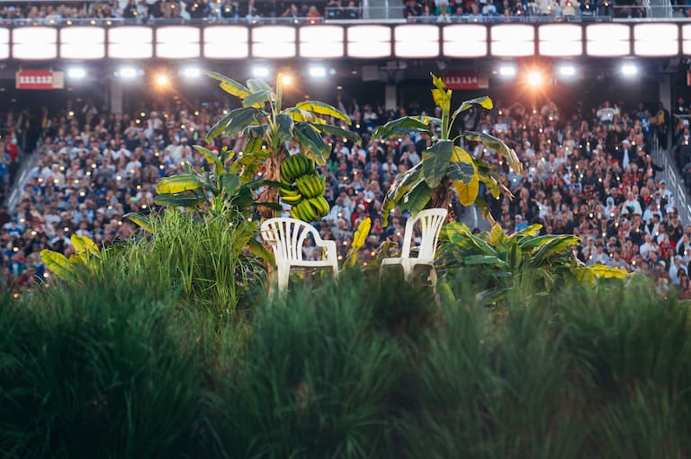 Las famosas sillas blancas de la portada de 'Debí Tirar Más Fotos' también estuvieron presentes.