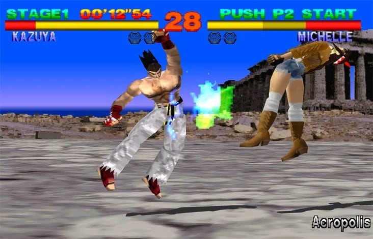 Tekken, en cambio, era más accesible a primeras partidas, y tenía un efecto “wow” de entrada mucho más marcado, más carisma inmediato. Tenía personajes más trabajados y que se te quedaban pegados, música más cañera y un ritmo diferente.