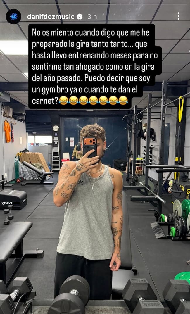 "No os miento cuando digo que me he preparado la gira tanto, tanto... que hasta llevo entrenando meses para no sentirme tan ahogado como en la gira del año pasado. ¿Puedo decir que soy gym bro ya o cuando te dan el carné?", ha bromeado en sus stories de Instagram.