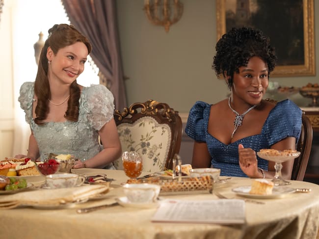 Hannah Dodd (Francesca Bridgerton) y Masali Baduza (Michaela) en la cuarta temporada de 'Los Bridgerton'