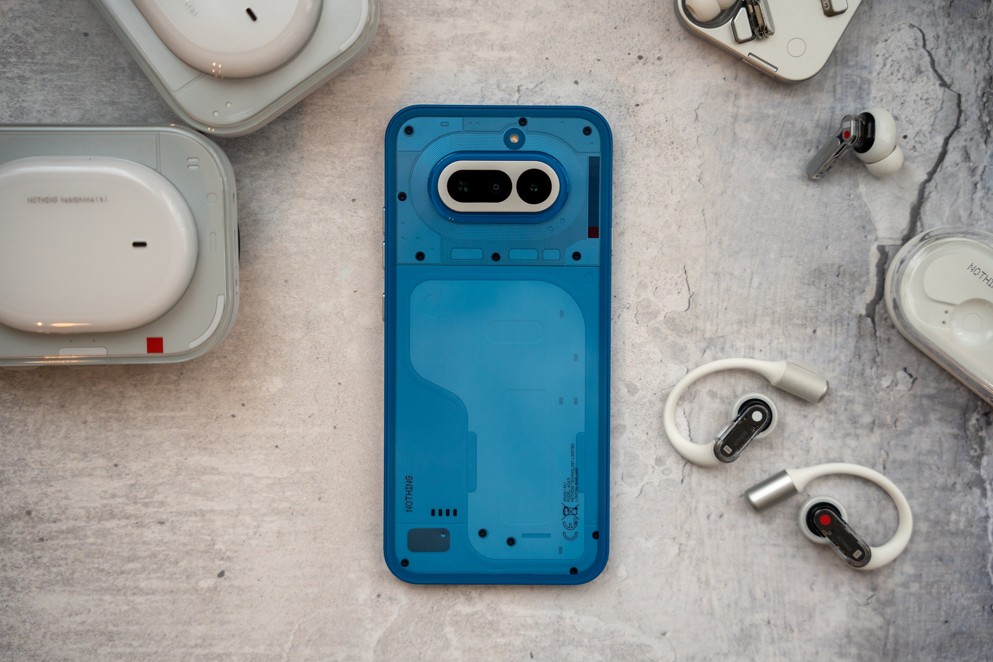 Los modelos blanco y negro siguen ese camino sobrio que nunca falta en el diseño de Nothing, pero el azul que ha caído en nuestras manos (y el rosa, que debuta con este modelo) casi parece querer beber más del atrevimiento del reciente Phone(3a) Community Edition, con un marco azul (casi eléctrico) y la transparencia, que crece muchísimo bajo los tonos azules.
