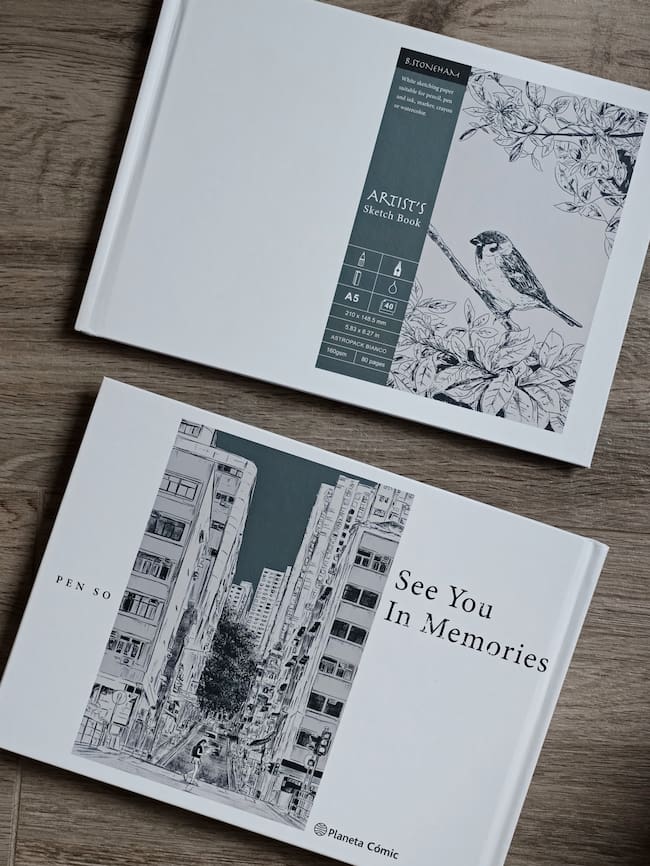Lo que hace muy especial este ‘See You in Memories’ es el propio formato editorial. La edición incluye, además del cómic principal, un pequeño cuaderno de bocetos que reproduce el cuaderno de dibujos de la protagonista (ambos en tapa dura). Este detalle no es meramente decorativo: el lector puede comenzar la experiencia por el cómic o por el cuaderno, lo que cambia ligeramente la forma en que se descubren ciertos detalles de la historia. Este juego convierte el libro en algo más cercano a un objeto narrativo que a una novela gráfica convencional.