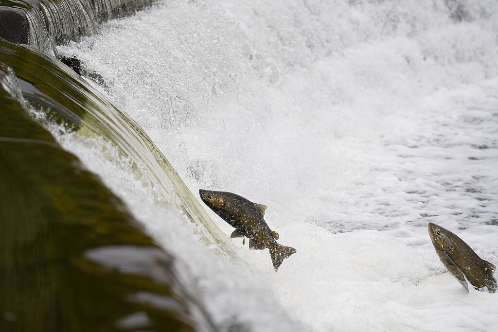Unos salmones tratando de remontar un río. / Anadolu