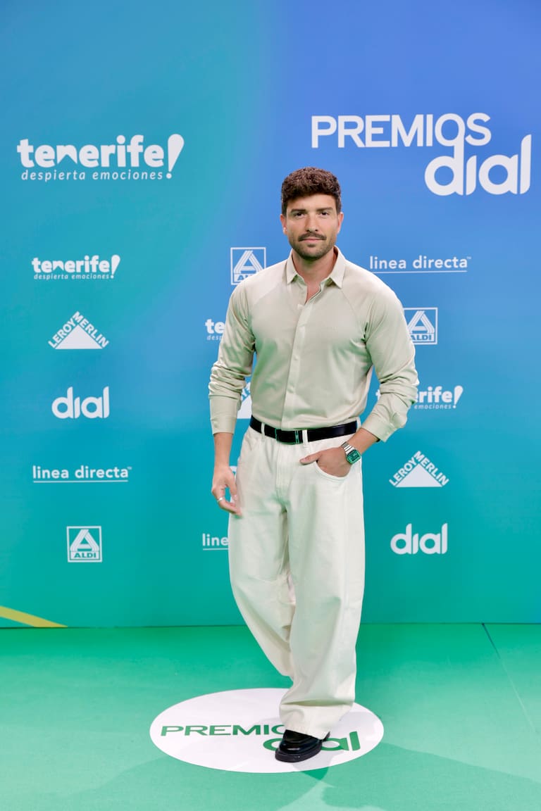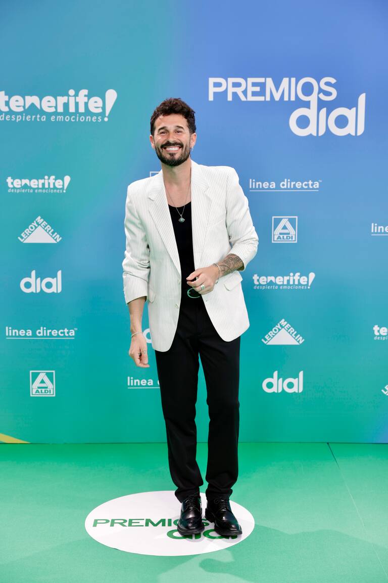 Primer año de Álvaro García en los Premios Dial que llegaba con su chaqueta de cuero y corbata. Este año se ha propuesto mandar mensajes positivos con su música en tiempos comlicados y parece que lo consigue con temas como Gloria Bendita o Persona vitamina que ha sido la sintonía de la vuelta ciclista de Andalucía. Buenos momentos para el novio de Gloria Camila.