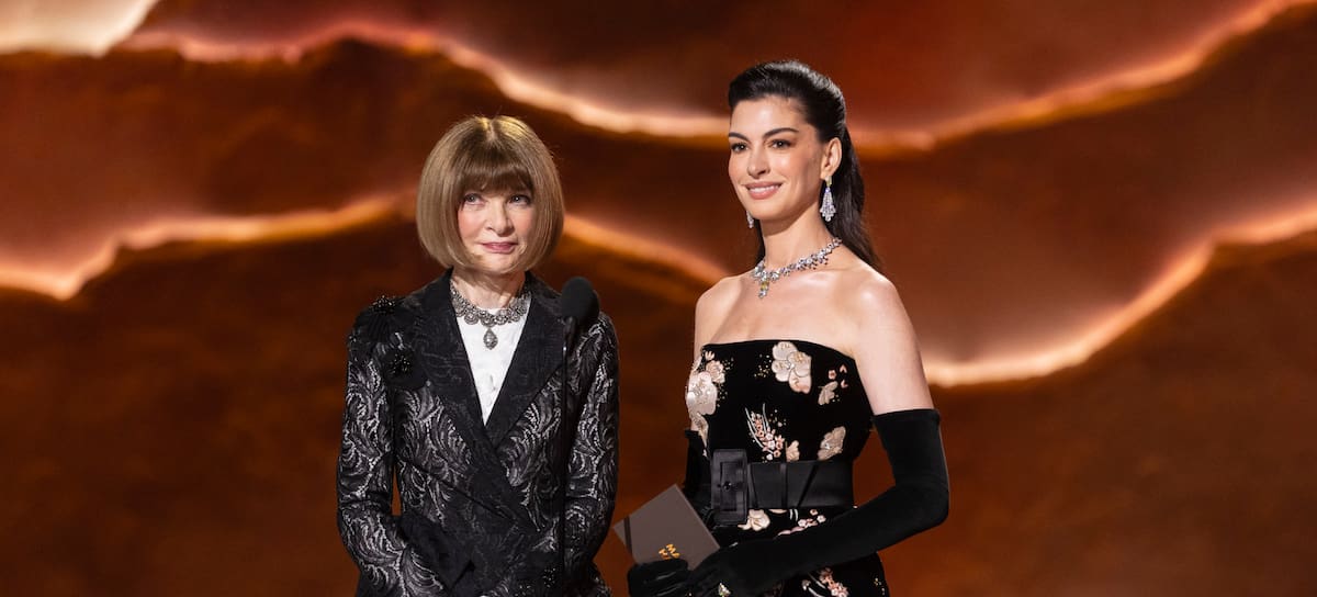Anne Hathaway y Anna Wintour se presentaron en el escenario de los Oscar, al ritmo de la emblemática Vogue de Madonna, para entregar dos estatuillas muy especiales para el mundo de la moda: Mejor Vestuario y Mejor Maquillaje y Peluquería. El dúo protagonizó un cómico momento que hizo un guiño muy especial al famoso filme que se inspira en la diseñadora, y que este año estrena una segunda parte, El Diablo viste de Prada.