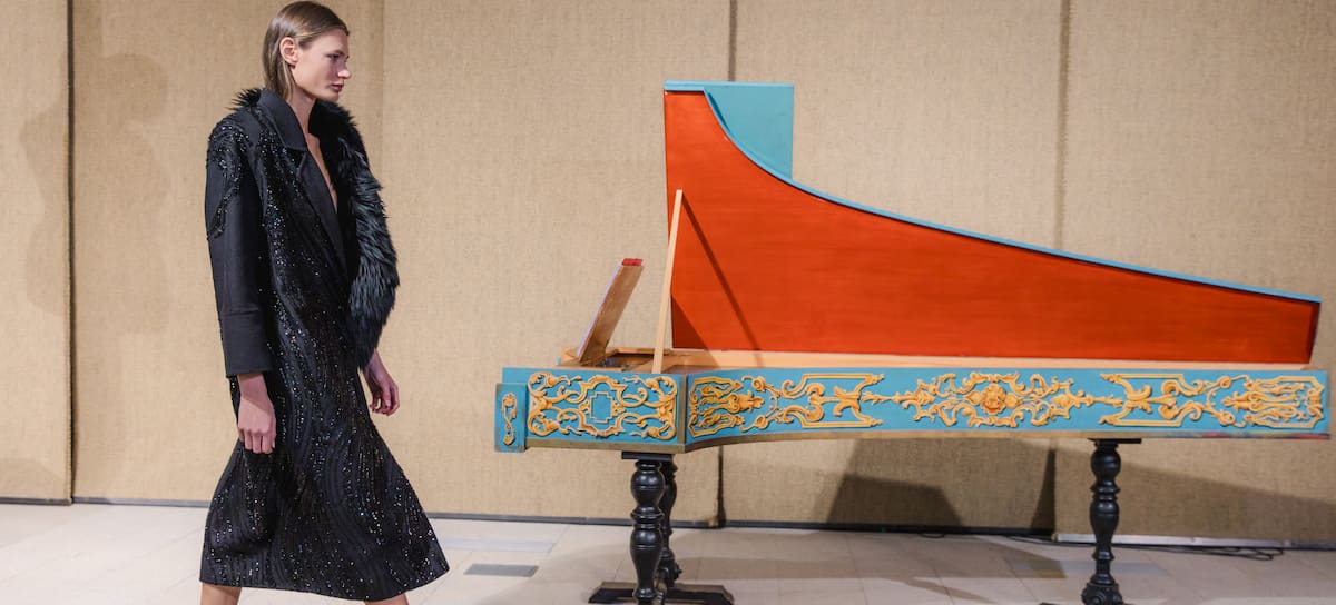 Así, el público quedaba arropado por el ensemble barroco para poder observar esta nueva tanda de creaciones con una banda sonora única e irrepetible. “Palco es un homenaje a las mujeres que han aprendido a liderar desde la cultura, la emoción y la mirada propia. Mujeres que no miran el espectáculo porque son parte de él”, define la diseñadora.