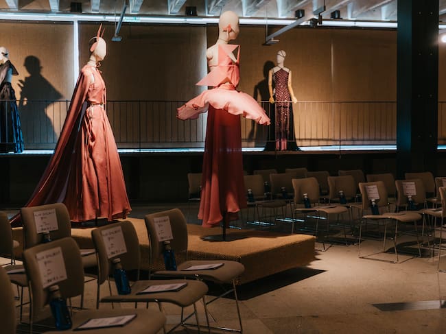 La intimidad del espacio no fue casualidad, porque verla de cerca era una de las intenciones de Dalbat. Inspirada en cuerpos de baile flamencos, clásicos y contemporáneos, así como en las orquestas, una veintena de looks rodeaban la sala sobre maniquíes rodeando el espectáculo.