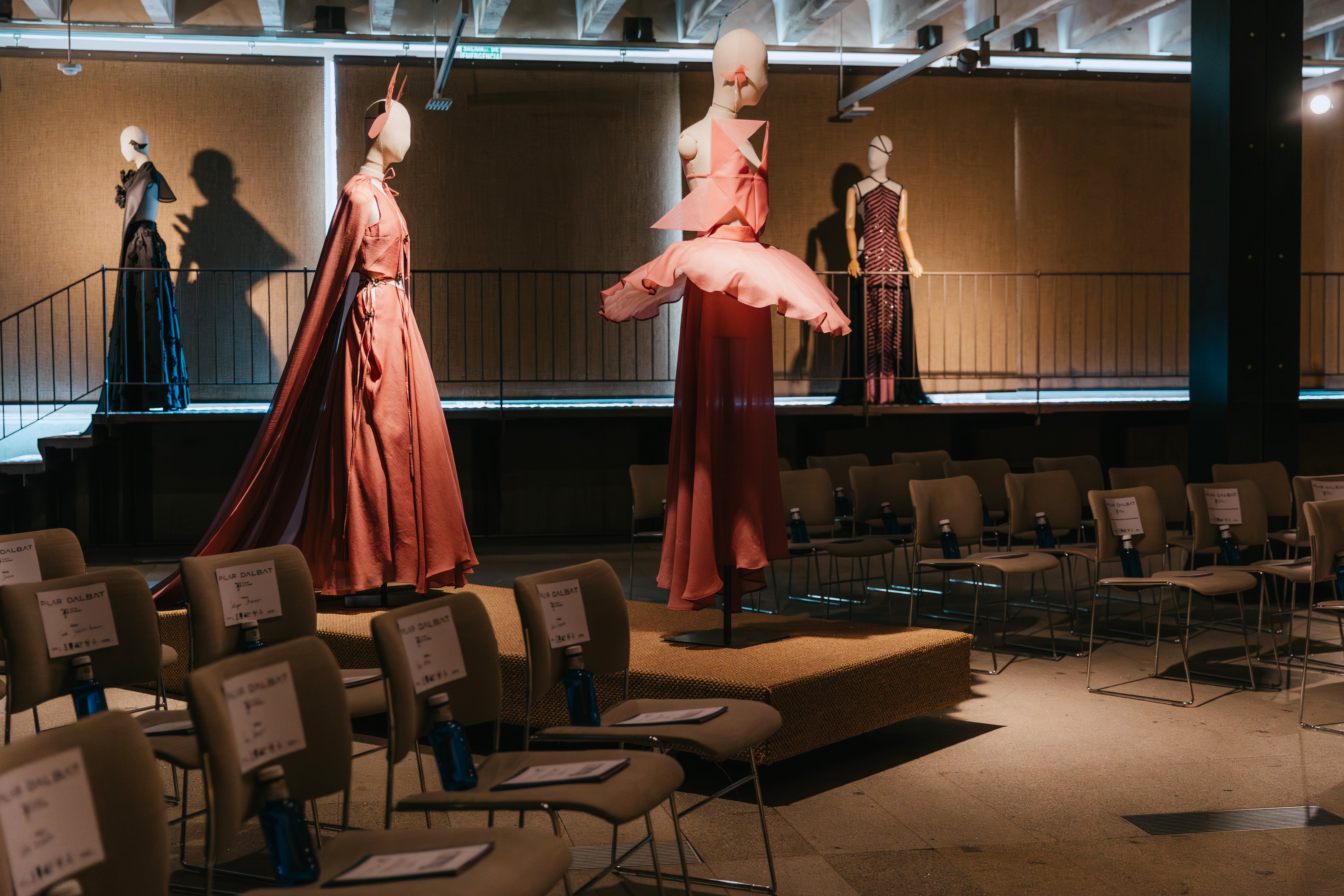 La intimidad del espacio no fue casualidad, porque verla de cerca era una de las intenciones de Dalbat. Inspirada en cuerpos de baile flamencos, clásicos y contemporáneos, así como en las orquestas, una veintena de looks rodeaban la sala sobre maniquíes rodeando el espectáculo.