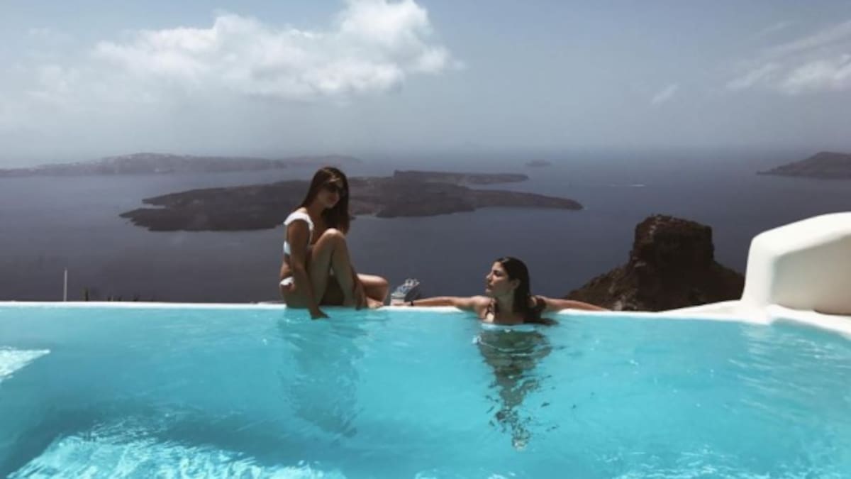 Sus vacaciones en Santorini nos están dejando instantáneas increíbles