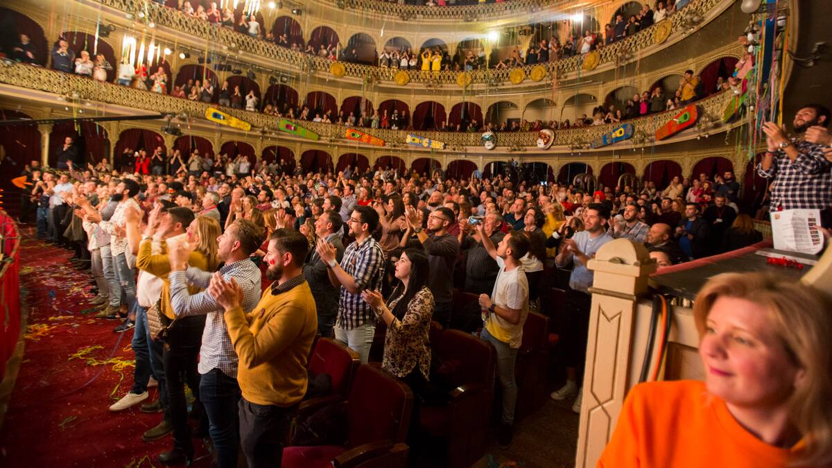 El emblemático Gran Teatro Falla, reúne a las mejores agrupaciones de coros, comparsas, chirigotas y cuartetos