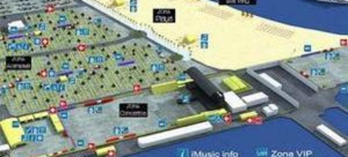 La Villa Musical se encuentra dividida en varias zonas: el Recinto Musical Pop-Rock con capacidad para 40.000 personas y donde se encuentra el escenario principal; el Recinto Musical Dj's dedicado a la música electrónica y que está situado junto al mar; el Area de Acampada con espacio para alojar a 25.000 asistentes y con todo tipo de instalaciones y facilidades (aseos y duchas, bares, tiendas, puntos de información...); una zona exclusiva de Parking junto al camping y una gran zona de aparcamiento a 1.5 Km de la Villa Musical donde poder aparcar vehículos sin preocupación alguna; y una zona Chill Out en la playa donde poder disfrutar a cualquier hora del día ambientando con música a los allí presentes.