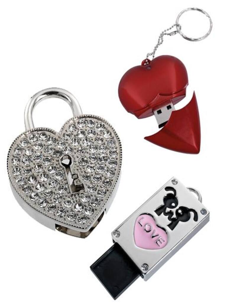 "Que no te roben el corazón" con estos pendrive de lo más tiernos. Con candado y brillantes, con la forma de un corazón "partio"... Unos USB que harán que te guardes el corazón.