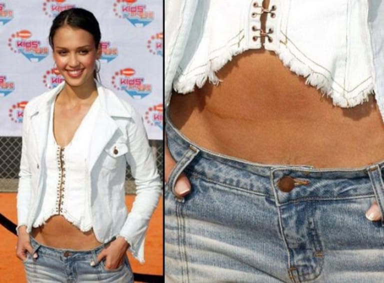 MEJOR PREVENIR QUE CURAR Los vaqueros extra bajos sientan genial. Pero claro, asegurate que no te pase lo que le ocurrió a Jessica Alba. Recuerda que si quieras enseñar ombligo no te olvides en depilarte donde la línea alba pierde su nombre