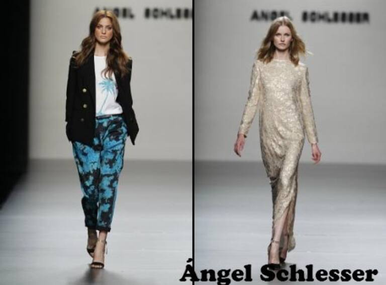 VIERNES: La de ANGEL SCHLESSER es otra de las mejores colecciones que se han visto, en este caso apta para todos los días. Looks sin artificios, vestidos todo terreno y esencia muy propia del diseñador. Estampa flores en azul y naranja. Una novedad en el cántabro que no suele dibujar sobre sus prendas. En las primeras horas Schlesser viste a la mujer con suaves conjuntos y vestidos en color blanco. Algunos se dejan decorar con tejidos metalizados y trazos de lamé.