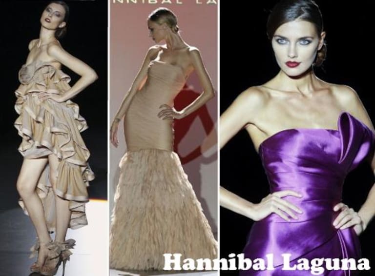 SABADO: Flores y más flores. Un jardín es el desfile de HANNIBAL LAGUNA. Rojo geranio, rosa ciclamen, naranja tulipán y verde olivo son los colores de la colección, la primera del diseñador sin vestidos en color negro. El diseñador vuelca toda su imaginación en los hombros y en las espaldas, pero también en las faldas. Luego aprieta con ansia la silueta y consigue así que los vestidos parezcan ramos de flores.