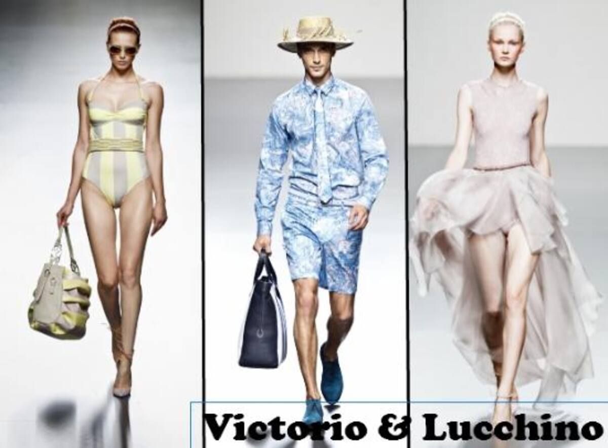 VIERNES: VICTORIO & LUCCHINO nos muestra una colección muy cuidada con inspiración africana y juego de tonalidades. Nos presentan a una mujer recatada pero femenina a través de los escotes redondos y cerrados. En moda de baño, guiño al look de los 50 con bañadores con cinturones, algunos de piedra, y en amarillo fluorescente. Los hombres vestirán con chaquetas con un toque veraniego a las que quitan formalidad con pantalones por encima de la rodilla.