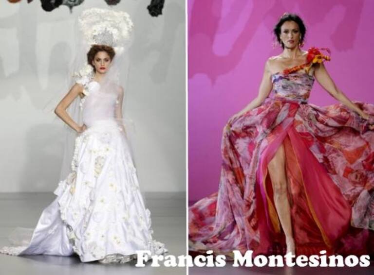 SABADO: El valenciano FRANCIS MONTESINOS esquiva las tendencias e idea una colección para festejar su larga trayectoria. Una carrera de éxitos y supervivencias. Tules, sedas y gasas se tiñen de amarillos y rojos de bandera. Los topos se bordan sobre vestidos que llevan encaje en la cintura y tul fruncido en el hombro. El negro no falta a baile y viste a los chicos que llevan bermudas transparentes que parecen faldas.
