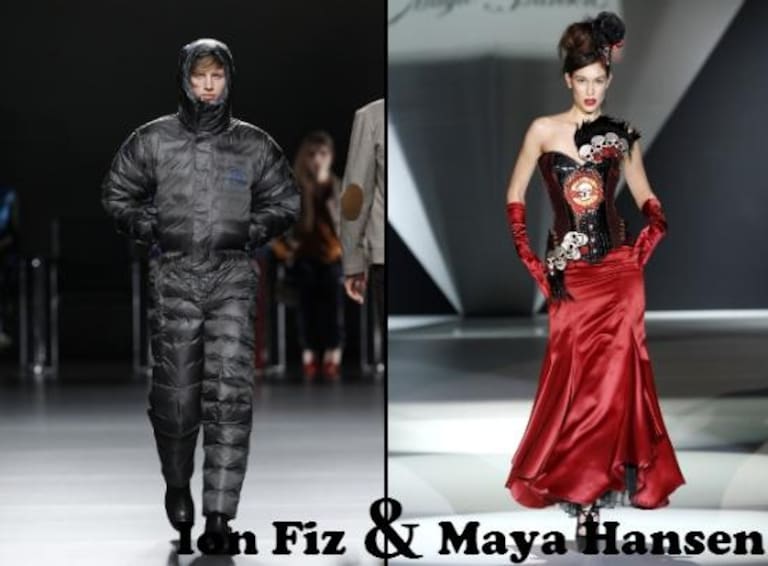 DOMINGO: La colección de ION FIZ evoca a la femenidad de los `50 con prendas realizadas con tela de saco mezclada con lino. El uso de la seda en la mujer en color navy y las transparencias y los pantalones de tallo alto para el hombre son los protagonistas de la colección. Por su parte, MAYA HANSEN presentó una colección que es un paseo desde la moda de las mujeres vaqueras hasta el burlesque parisin. Los minivestidos encorsetados decorados con grandes mechones de pelo en las caderas.