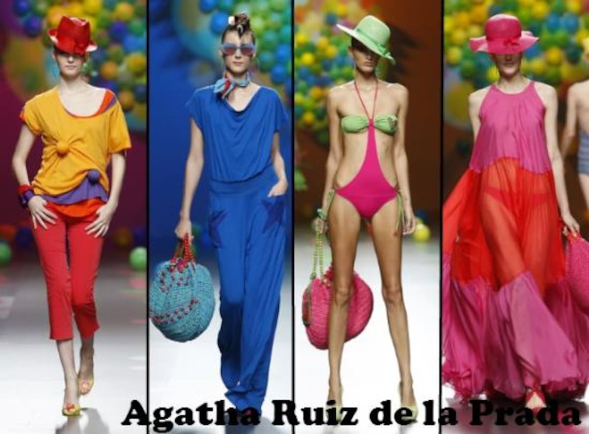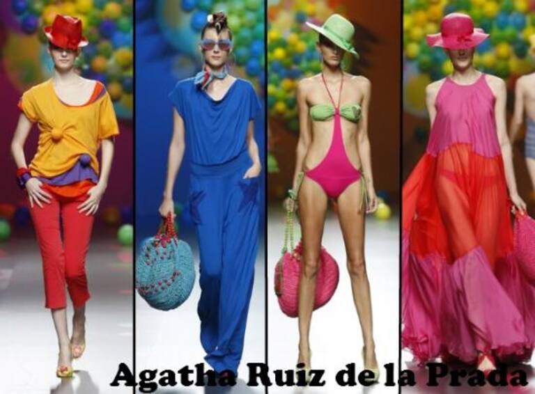SABADO: AGATHA RUIZ DE LA PRADA nos propone una moda para la próxima temporada donde la mujer se viste cómoda, libre y se siente más fabulosa que nunca. Patrones geométricos, siluetas rectas y estructuras depuradas con un ligero guiño a cortes sesenteros. Vestidos camiseros, largos de una sola pieza y de forma saco.