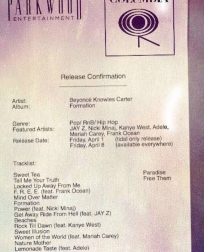 #Track List. Estamos seguros que la última filtración no ha hecho mucha gracia ni a Beyoncé ni a todo el equipo que la rodea. Y es que ha salido a la luz un documento que revela todos los detalles de #B6: título, colaboraciones, fecha de lanzamiento y lista de canciones.