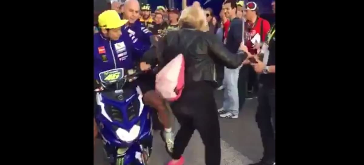 Entre la multitud apareció una scooter pilotada por Valentino Rossi y con alguien más de paquete. El italiano pudo optar por advertir de que estaban obstaculizando su paso, pero se decantó por algo que ya habíamos visto hace un año. Sacó su pierna y le propinó un golpe similar al de Márquez, pero en esta ocasión a una desconocida. No sabemos cómo le habrá salido la foto a la señora, pero la verdad que nos encantaría poder verla.
