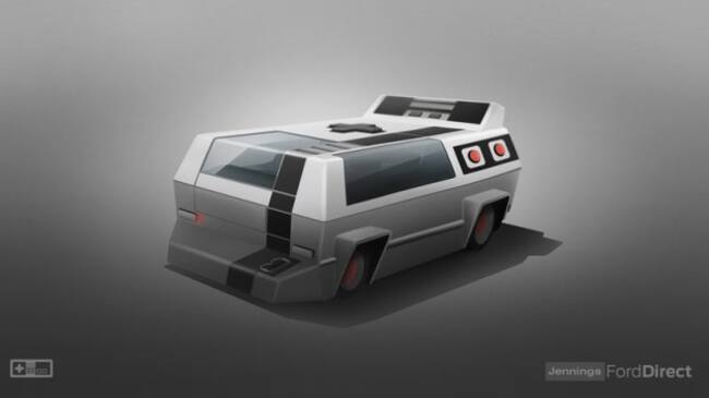 El responsable de estas creaciones es Jennings Ford Direct, un concesionario de Reino Unido cuya venta de coches del día debía de ser floja como para dedicar tiempo a imaginar qué aspecto tendrían estas videoconsolas, las consolas clásicas, en forma de coches futuristas.