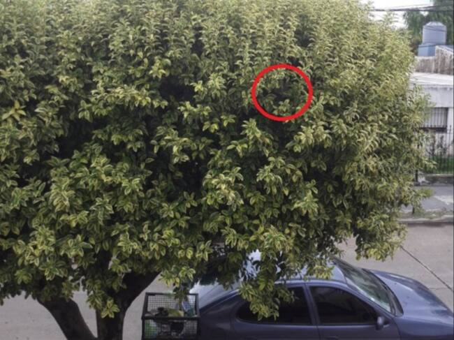 En la instantánea se ve un coche y, junto a él, el árbol. Encontrar al animal no es, en absoluto, sencillo. Haz la prueba: