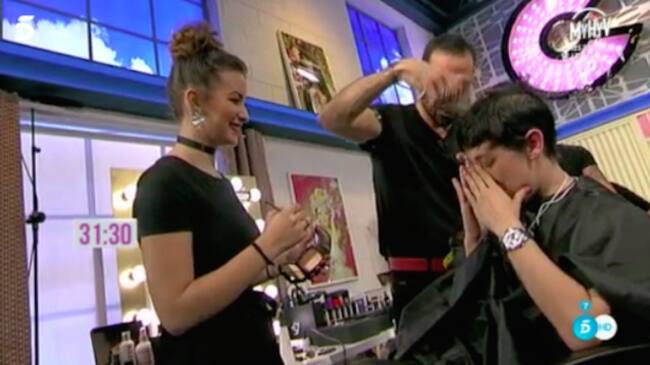 Si antes llevaba una media melena larga, ahora tenía un corte mucho más radical a lo Úrsula Corberó. Al notarlo se llevó las manos a la boca y empezó a "hiperventilar" como dijo Carlota Corredera.