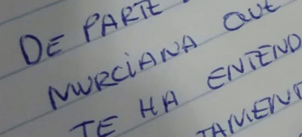 En la nota se puede ver escrito a mano: "De parte de una murciana que te ha entendido perfectamente cuando has hablado".