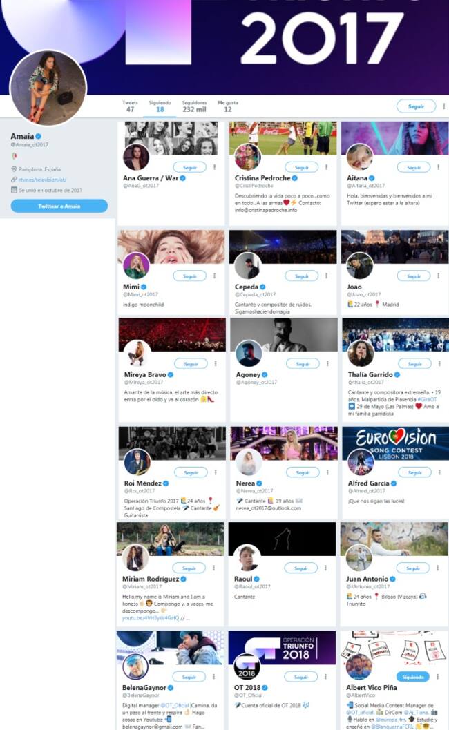 Amaia Romero, más conocida como "Amaia de España", sólo sigue a una persona que no está relacionada con el universo de Operación Triunfo desde su cuenta de Twitter.