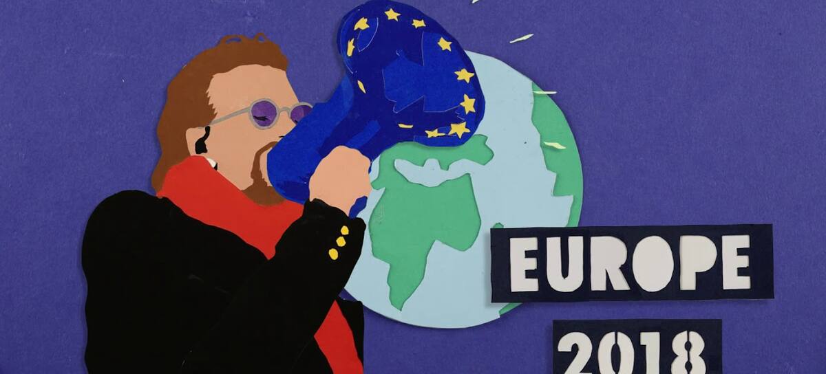 U2 arranca su gira europea izando la bandera de la UE en sus conciertos