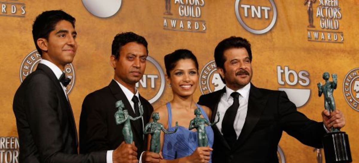 (De izq a der) Dev Patel, Irrfan Khan, Fredia Pinto y Anil Kapoor durante la premiere de 'Slumdog Millionaire' en 2009 / Dan MacMedan (WireImage vía Getty Images)