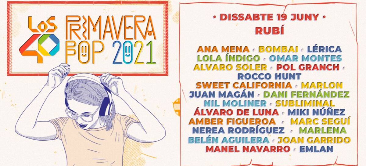 La cuenta atrás ha empezado. El próximo sábado 19 de junio tus artistas favoritos se subirán al escenario del Amfiteatre del Parc del Castell, en Rubí (Barcelona). ¡Ana Mena, Bombai, Marc Seguí, Lola Índigo, Omar Montes, Lérica, Pol Granch, Rocco Hunt, Nil Moliner, Belén Aguilera, Álvaro Soler, Sweet California y muchos más te esperan de la mano de LOS40 Primavera Pop 2021!