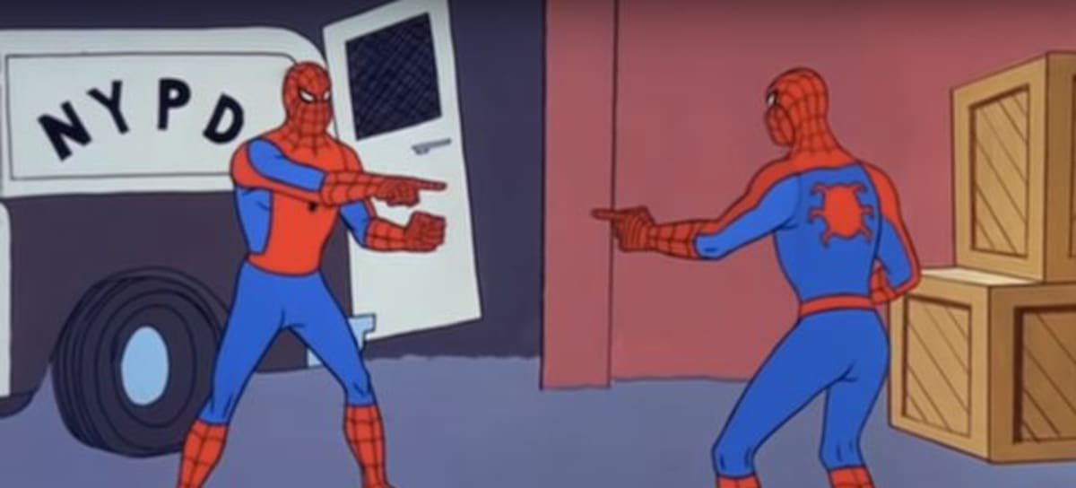 Pero no es un meme cualquiera. Todo fan que se precie del trepamuros tiene en mente ese icónica imagen de la serie de animación del personaje de 1967, en la que dos personas con el mismo traje rojo se señalan para evitar que la policía perdone al impostor en vez de a él. El episodio se llamó Doble Identidad, y su trama giró en torno a un ladrón ataviado de Spidey al que incluso Jonah J. Jameson quiso atrapar.