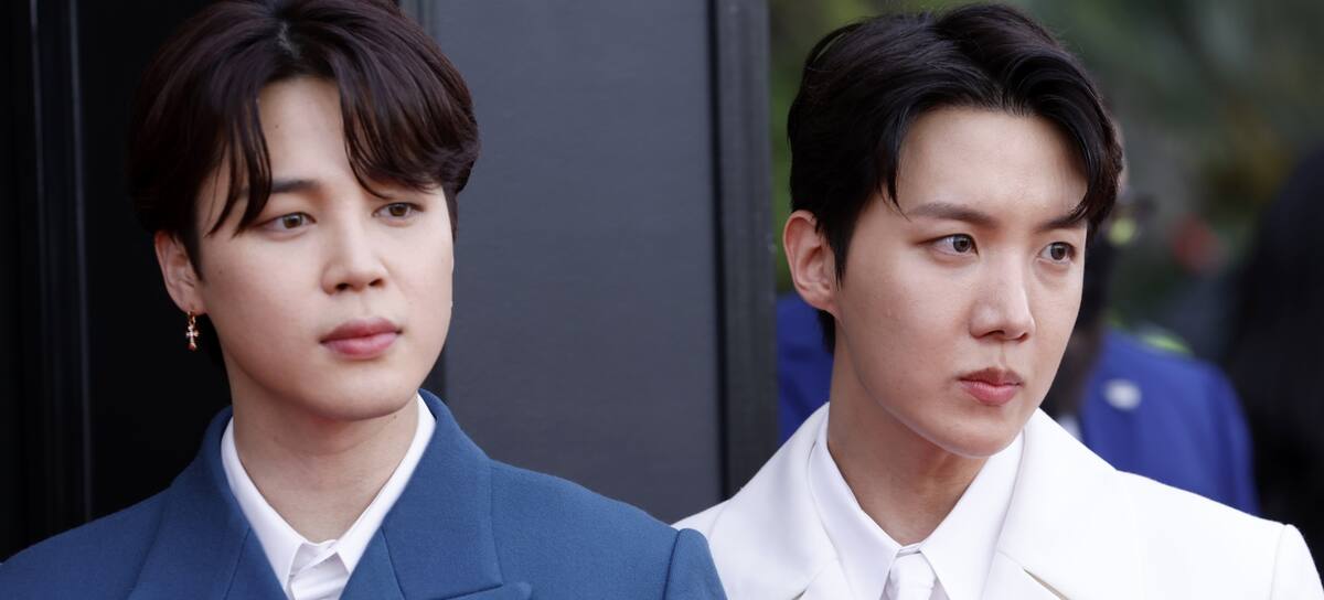 Jimin y J-Hope (BTS) en los Premios Grammy 2022 / Frazer Harrison (Getty Images)