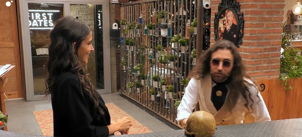 Un invitado deja muda Lidia Torrent en 'First Dates' por su peculiar afición a coleccionar cráneos humanos. / Mediaset