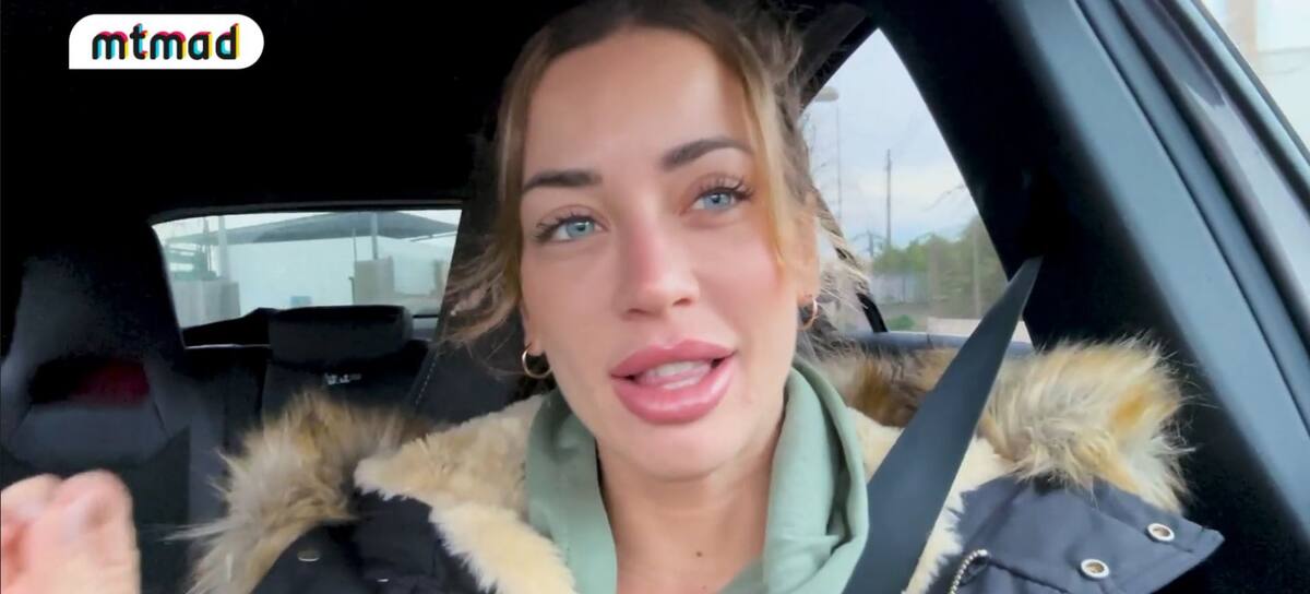Mayka Rivera posa sonriente en el interior del coche antes de su inminente ingreso en el hospital. / Mediaset