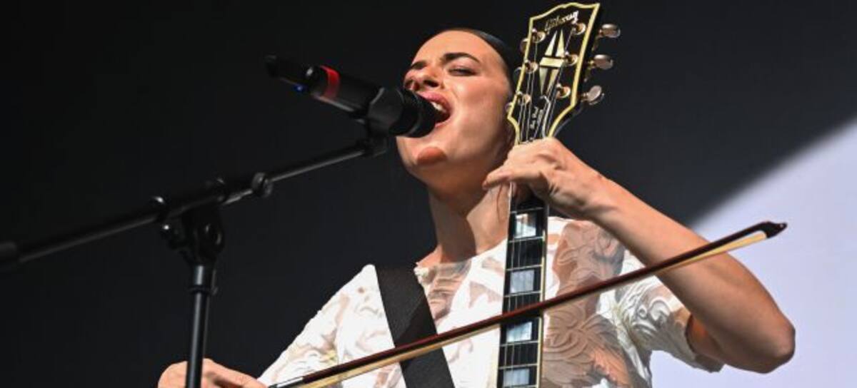 Además, visualmente aparece con un vestido abierto con una textura voluminosa y de color blanco. Por otro lado, la tela tiene un patrón bordado que define a la perfección la intención del show. Mezclar lo clásico con lo moderno, fusionar la sencillez de lo castizo con la complejidad de las nuevas influencias. Toda su performance son metáforas, un arco de violín representando la música clásica con la guitarra eléctrica. Una gestión increíble.