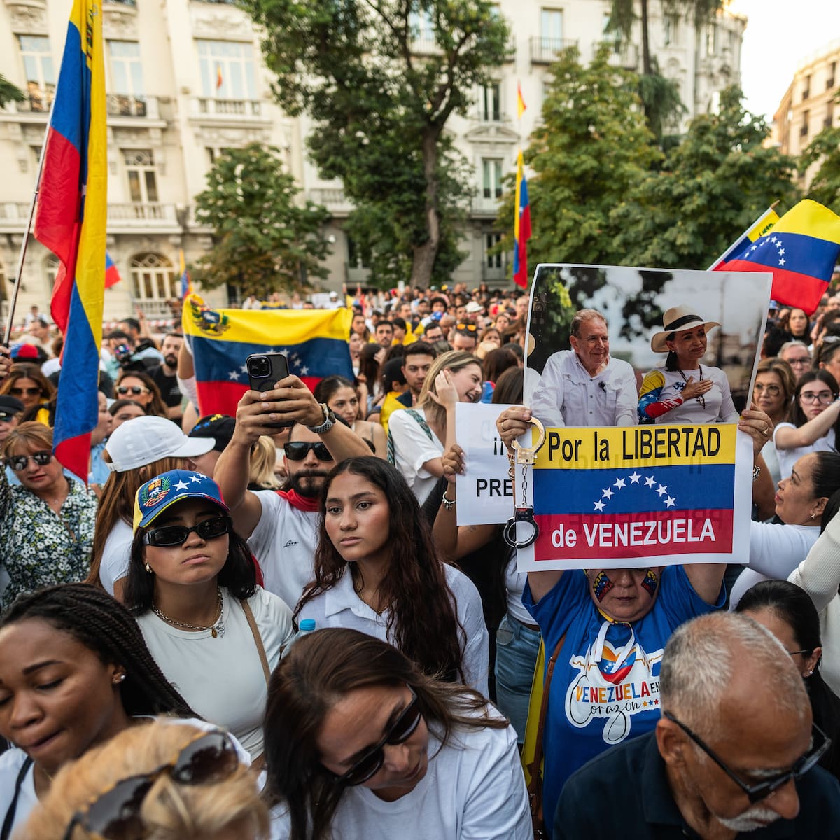 La concentración ha sido convocada por la oposición venezolana y respaldada por diversas figuras políticas españolas