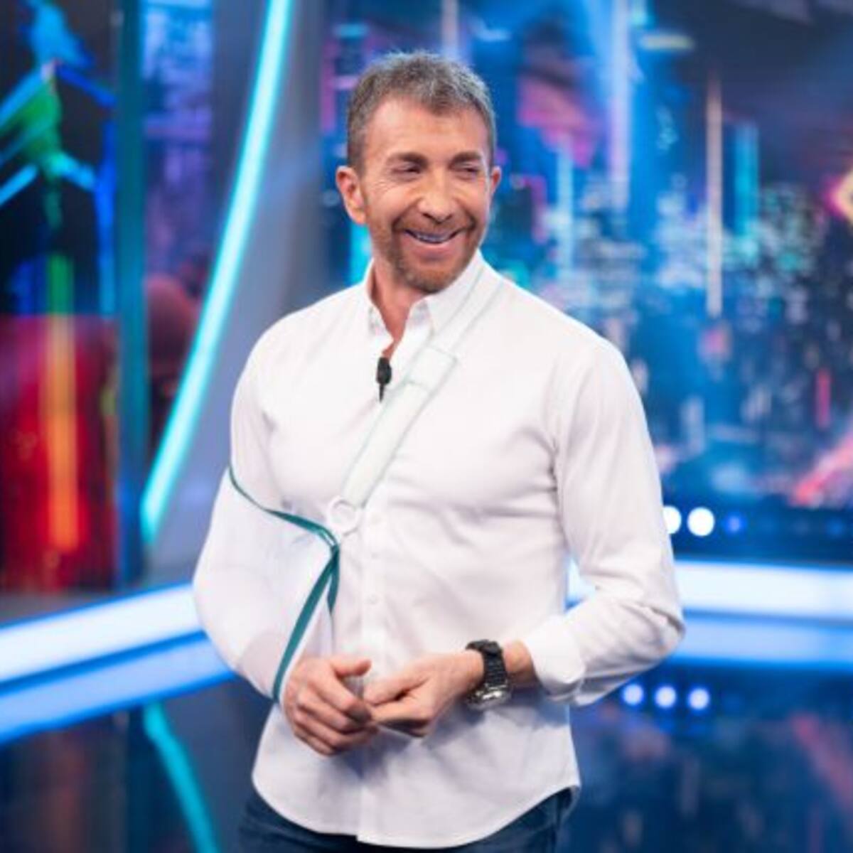 El presentador tuvo que ser operado de urgencia y se presentó en el programa con cabestrillo