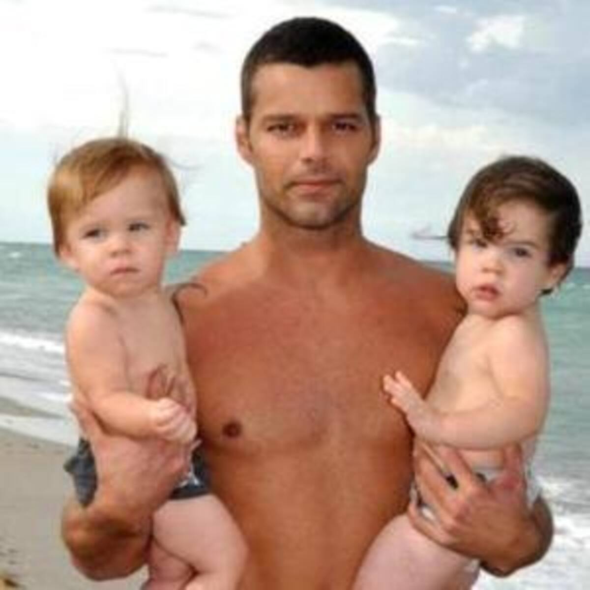 El sexy puertorriqueño comparte momentos íntimos de su vida familiar a través de twitter. Ahora podemos ver a Ricky disfrutando de sus dos hijos durante un dia de playa
